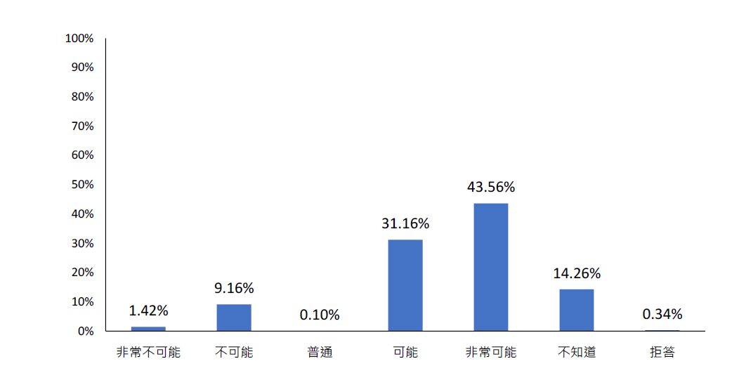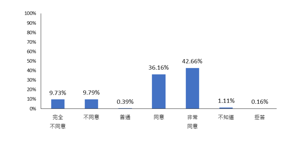特別值得關注的是,在AI風險認知上出現明顯落差:74.75%民眾認為AI對自身風險較小,但62.10%認為AI會對他人造成風險。這種認知差異可能影響社會對AI發展的共識。對此,73.10%的受訪者支持由政府制定規範引導AI技術應用,反映民眾期待建立可信賴的AI發展環境。