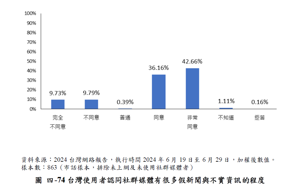 ▲圖3: 台灣使用者認同社群媒體有很多假新聞與不實資訊的程度